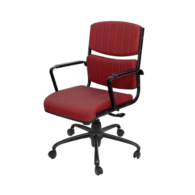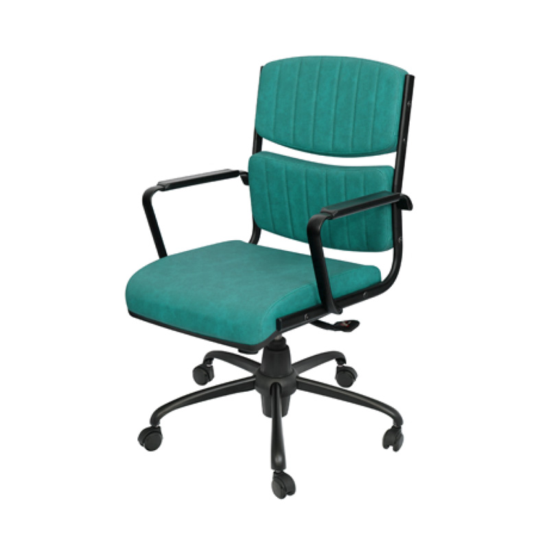 صندلی کارمندی مدل E440 با فریم فلزی ساخته شده که روکشی از رنگ الکترواستاتیک تمام بخشهای فلزی را پوشانده است. روکش صندلی از چرم مصنوعی درجه یک و متریال کار شده داخل نشمین و پشتی فوم سرد قالبی میباشد. تنظیم ارتفاع و تنظیم زاویه پشتی دو قابلیت این صندلی کار میباشد.