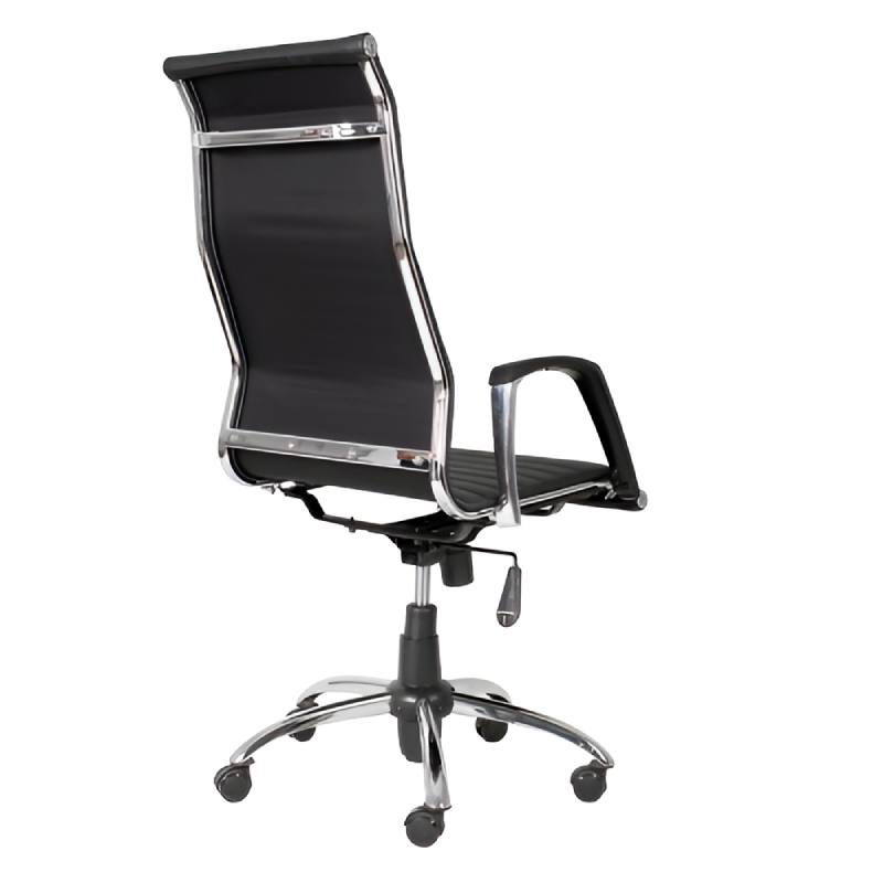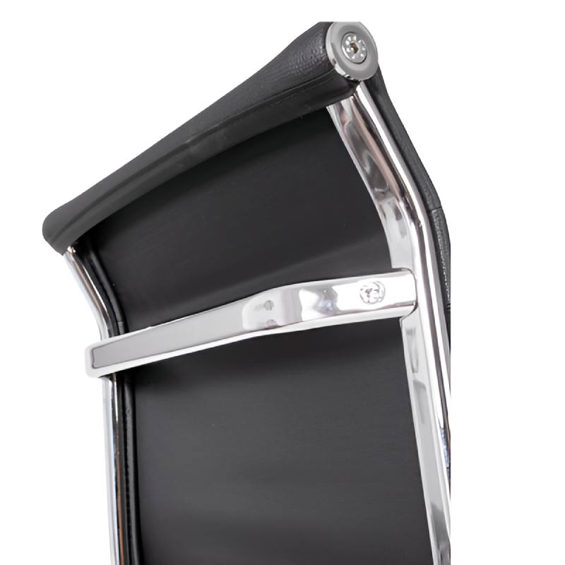 فریم این صندلی از لوله فولادی با پوشش آبکاری کروم ساخته شده و روکش آن به صورت مستقیم روی فریم نصب شده تا ظاهری مینیمال و مدرن داشته باشد. طراحی پشتی با انحنای ستون فقرات هماهنگ است و امکان تنظیم ارتفاع تا ۸ سانتیمتر را برای افراد با قدهای مختلف فراهم میکند.